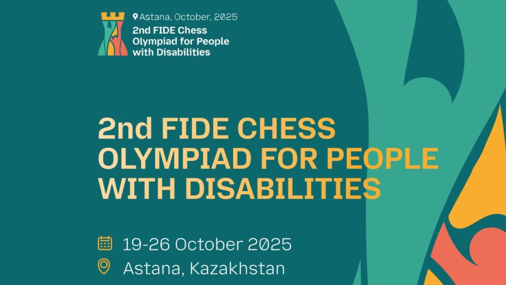 FIDE is pleased to announce the official list of participating teams for the 2nd Chess Olympiad for People with Disabilities, to be held from October 19–26, 2025, in Astana, Kazakhstan. Following the success of the inaugural edition in Belgrade in 2023, the event once again brings together players from all over the world to celebrate inclusivity, fair play, and the unifying power of chess. A total of 35 teams will compete in Astana, with participation from all four continents, the three international associations of players with disabilities, and additional nominations from the FIDE President and the host federation. Participating teams Europe – 9 teams Poland, Hungary, Israel, Ukraine, Germany, Croatia, Czech Republic, North Macedonia, Serbia Asia – 7 teams FIDE, Philippines, India, Bangladesh, Myanmar, Uzbekistan, United Arab Emirates Americas – 7 teams Cuba, Venezuela, Argentina, Colombia, USA, Chile, Panama Africa – 5 teams Egypt, Zambia, Zimbabwe, Uganda, Kenya International Associations of Players with Disabilities – 3 teams International Braille Chess Association (IBCA), International Chess Committee of the Deaf (ICCD), International Physically Disabled Chess Association (IPCA) Nominations of the FIDE President – 2 teams Kazakhstan ICCD, FIDE 2 Host Federation – 2 teams Kazakhstan 1, Kazakhstan 2 With 2025 declared the Social Chess Year, this Olympiad highlights FIDE’s continuing commitment to making chess accessible to everyone, regardless of physical abilities. With strong representation across continents and organizations, Astana is set to welcome a truly global competition that embodies the spirit of inclusion and the universal language of chess.