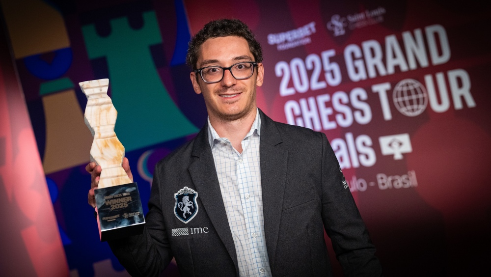 Fabiano Caruana emerged victorious at the 2025 Grand Chess Tour Finals, defeating Maxime Vachier-Lagrave in an exciting final by a score of 15–13. The champion took home a $150,000 first prize. The 2025 Grand Chess Tour Finals, featuring a $350,000 prize fund, took place from September 26 to October 3 at the WTC Events Center in São Paulo, Brazil. For the first time in history, the event was held in Latin America. The 2025 edition followed a single-elimination knockout format with mixed time controls (2 classical games, 2 rapid games, and 4 blitz games) and the following points distribution: Classical games: 6 points for a win, 3 for a draw, 0 for a loss Rapid games: 4 points for a win, 2 for a draw, 0 for a loss Blitz games: 2 points for a win, 1 for a draw, 0 for a loss Both semifinal matches — Maxime Vachier-Lagrave vs. Praggnanandhaa R. and Fabiano Caruana vs. Levon Aronian — were decided in the faster time controls after all four classical games ended in draws. After a series of draws, Caruana won the third blitz game, which earned him a spot in the final. In the other semifinal, Vachier-Lagrave took the lead by winning the first rapid game, but Praggnanandhaa narrowed the gap by prevailing in the second blitz encounter. However, the Frenchman shattered his opponent’s hopes by taking the third blitz game and advancing to the final. The final match also turned into a thrilling battle in the rapid and blitz segments. After winning the first rapid game and drawing the second, MVL — a renowned blitz specialist — entered the blitz portion of the match with confidence, but Caruana had plans of his own. Somewhat unexpectedly, the American pulled off three straight wins, and sealed the title with a draw in the fourth blitz game. In the match for third place, Aronian convincingly defeated Praggnanandhaa by a score of 20–8. 2025 GCT FINALS RESULTS POSITION NAME COUNTRY PRIZE MONEY 1 GM Fabiano Caruana USA $150,000 2 GM Maxime Vachier-Lagrave FRA $100,000 3 GM Levon Aronian USA $60,000 4 GM Praggnanandhaa R. IND $40,000 “The final game had its own share of drama, but I hope the fans got enjoyment from watching the action,” said Caruana. “It’s an honor to win the 2025 GCT. It’s so prestigious and difficult, especially in match play. I’m thrilled I was able to win this year’s Finals.” “Congratulations to GM Fabiano Caruana on winning this year’s GCT,” said Rex Sinquefield, co-founder of the Saint Louis Chess Club. “Saint Louis was proud to host two exciting legs of the Tour, and we can’t wait to welcome the chess world back next year in our newly expanded club.” “Congratulations to GM Fabiano Caruana on winning the GCT 2025 Finals, and to all players for their incredible performances. For us, helping bring the Tour to São Paulo was a unique opportunity to boost chess in the region. We hope it inspires people of all ages and backgrounds to play chess more, dream big, and achieve greatness,” said Augusta Dragic, President of the Superbet Foundation. Photos: Lennart Ootes and Eric Rosen Official website: grandchesstour.org/
