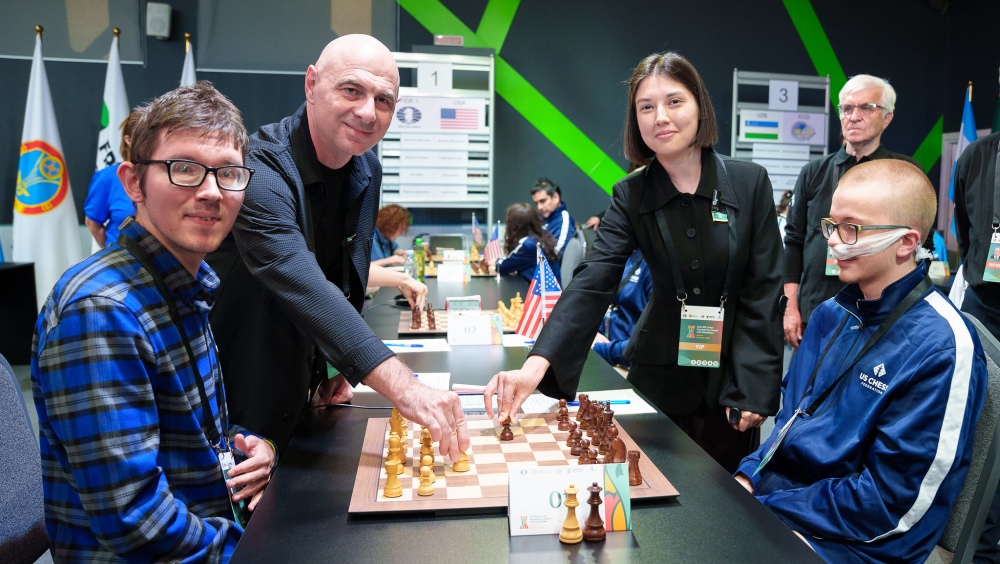 The 2nd FIDE Chess Olympiad for People with Disabilities in Astana has reached its half-way mark – the equator of this inspiring event. With Round 3 underway, the excitement and determination in the playing hall grow stronger each day. The first ceremonial move of the round was made by Dinara Naumova, Member of the Parliament of Kazakhstan, together with Akaki Iashvili, FIDE Special Tasks Director. “Before the first move, I spoke with the contestants – they were positive and confident. The atmosphere is wonderful, and the team spirit is inspiring,” said Dinara Naumova. “It’s an honour for Kazakhstan to host this event. I wish every player success and the strength to never give up. Team spirit makes us stronger.” Her words perfectly captured the spirit of the event – one of unity, resilience, and shared joy. The strength and spirit of the players Every participant at this Olympiad has a remarkable story. For them, every move on the board represents persistence, focus, and the triumph of the human spirit. Luisa Molina, from Team Colombia, shared her joy at being part of this inclusive event: “This Olympiad for People with Disabilities has been one of the best experiences we’ve ever had! This isn’t your usual event – it provides a space for inclusion.” Aryan Joshi from India, a first-time participant, was full of enthusiasm and optimism: “Feeling amazing – this is my first Olympiad for people with disabilities. Despite disabilities, despite the challenges on and off the board, everyone here is giving their best. Everyone is very friendly and very happy. Disability is not something that makes us less – we are differently able, not disabled.” Niloy Chakraborty, a coach for players with hearing impairments and an accompanying person at the event, emphasized the importance of opportunity: “I’ve worked with disabled students for a long time. I’ve shown them tournaments, helped them find opportunities, and organized many events for differently able teams. Here, everyone can participate – and they do, as equals.” Eugenio Campos, representing the IPCA team, coming from Angola, shared how chess became part of his life from a very young age: “This is a well-organized event; it gives us, players with disabilities, the opportunity to play against others from different countries. I thank IPCA, FIDE, and the Kazakhstan Chess Federation. I started chess when I was five – my cousin taught me, and since then, chess has meant a lot to me. Most of my life, I’ve played chess – it’s everything to me.” Another remarkable player of IPCA team is IM Igor Yarmonov from Ukraine, a five-time IPCA World Champion and International Master of both chess and chess composition. His wife and accompanying person, Galina Yarmonova shared: “We are grateful to all the organisers, volunteers, and staff for the wonderful atmosphere in Astana, for the excellent conditions for the players and their companions – everything is of the highest standard! This is our first time at such an Olympiad, and we thank the referees and volunteers for their kind, individual approach to each player.” “Throughout Igor’s life, chess has helped him overcome challenges and see the world – and we are happy to represent this big chess family,” she added. Even after the event, Igor continues contributing to the chess world as a judge for multi-move problems in the FIDE Album – evaluating compositions from around the globe. Inspiration beyond the board Every player finds their own motivation to keep going, and we asked, “Who is your favourite chess player in history?” Answers came quickly and with admiration: Magnus Carlsen, José Capablanca, Garry Kasparov, Anatoly Karpov, Bobby Fischer, and Mikhail Tal were among the most mentioned. But one response stood out. Jesús Osorio from Panama said: “My favourite chess player is not a famous person, but he is a very good chess player – my friend Osvaldo Herrera Graham.” A beautiful reminder that inspiration doesn’t only come from world champions, but also from those who encourage us personally – friends, coaches, and loved ones who share the same passion. The battle for the top Position of the day Today’s Position of the Day came from the exciting battle between Syed Ejaz Husain (Bangladesh) and Ben Kaufmann (Germany). Although Black’s position was slightly worse, they could still defend with 20…Nd6, trading off White’s active knight on f5. Instead, 20…Ne6?? was played, ignoring of White’s mounting kingside pressure. White immediately took advantage with 21. Ne5!, and after 21…Ra6?!, taking no heed of danger, came 22. Qg4 — launching a decisive attack. Black tried 22…Kh7, defeinding h6, but the storm was already breaking. White delivered a stunning blow 23. Nxh6!!, a brilliant sacrifice that ripped open Black’s kingside. After 23…gxh6 24. Qf5+ Kg8 25. Qxf7+ Kh8 26. Ng6#, it was checkmate. This brilliant finish reminds us of one of the great lessons of chess — and life: sometimes, you must take risks and trust your calculation. Evaluating, understanding, and acting with courage can lead to victory both on and off the board. Looking ahead As the Olympiad crosses its midpoint, the energy in Astana continues to rise. Every player here proves that chess is not only a sport of the mind, but a triumph of spirit, inclusion, and shared humanity. The standings after Round 3 and pairings for Round 4 can be found here: Chess Results – 2nd FIDE Chess Olympiad for People with Disabilities Official website: dis-olympiad2025.fide.com/