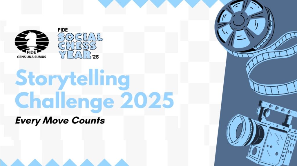 Participants of FIDE Social Chess Storytelling Challenge have until November 30, 2025, to submit their stories under the theme “Every Move Counts.” To date, the Challenge has received 32 submissions from the following countries: Germany, Nigeria, El Salvador, South Africa, Ghana, USA, Democratic Republic of Congo, Mexico, England, Guam, Netherlands, Kenya, Spain, India, Lesotho, Vietnam, Hungary, Mauritius, Costa Rica, and Brazil. The challenge invites filmmakers, educators, and chess promoters worldwide to showcase how chess is changing lives and strengthening communities. From classrooms and rehabilitation centers to local clubs and public spaces, these stories reveal how the game can inspire growth, connection, and inclusion. Participants can enter in two categories: Professional and Grassroots (Amateur), and are encouraged to submit short films that highlight the social impact of chess in creative and authentic ways. Winning films will receive a FIDE trophy and an invitation to the Opening Ceremony of the 2026 Chess Olympiad, including accommodation for two nights for two guests. The selected stories will also be featured during the 2025 FIDE Social Chess Conference and showcased on FIDE’s official media channels. Participation is open to everyone, regardless of age or nationality. Submission deadline: November 30, 2025 Submit your film here: fide.com/social2025-storytelling-challenge/#send