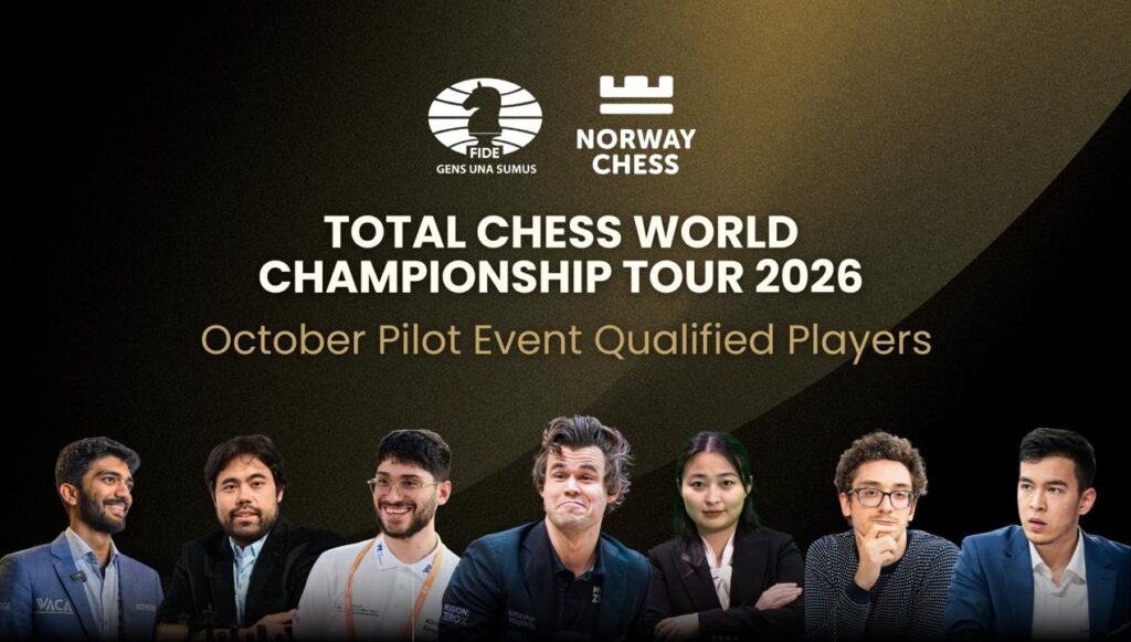 FIDE and Norway Chess are pleased to announce the first 16 players who have earned the right to receive an invitation to the 2026 Total Chess World Championship Tour pilot tournament (“Total Chess 2026 Pilot”), the new combined competition across Fast Classic, Rapid, and Blitz. The 2026 event is officially a pilot, testing the full concept, format, and regulations of the Total Chess World Championship Tour. The inaugural full Tour season, with the official crowning of the first Total Chess World Champion, will start in 2027. The pilot tournament is scheduled to take place from October 3–15, 2026. The host destinations/locations will be announced at a later date. Formal invitations to the qualified players will be sent out in the coming days and within the next week. Based on the qualification criteria approved by FIDE, the group already includes the top 13 players in the January classical rating list, the Women’s World Champion, plus additional elite qualifiers from the World Rapid and World Blitz Championships – a more than respectable lineup for the 2026 pilot. Players who have earned the right to receive an invitation 1–2. World Champions GM Gukesh Dommaraju – World Champion GM Ju Wenjun – Women’s World Champion 3–5. World Rapid Championship 2025 (three places) The three medalists of the 2025 World Rapid Championship have earned the right to be invited: GM Magnus Carlsen GM Vladislav Artemiev GM Arjun Erigaisi 6–7. World Blitz Championship 2025 (two places) The two qualifiers from the 2025 World Blitz Championship are: GM Nodirbek Abdusattorov GM Maxime Vachier-Lagrave (qualified via the lowest average sum of placements) 8–16. Top-9 Rated Players (January 2026 list, with replacements) Based on the classical rating list as of 1 January 2026, and applying the agreed replacement rules (to account for players already qualified via World Championships and World Rapid/Blitz), the following players have earned the right to receive an invitation via rating: GM Hikaru Nakamura GM Fabiano Caruana GM Vincent Keymer GM Anish Giri GM Alireza Firouzja GM Rameshbabu Praggnanandhaa GM Wei Yi Two further places are filled according to the replacement criteria: GM Wesley So – first replacement (lowest average sum of placements) GM Viswanathan Anand – first replacement according to rating A star-studded field and the road ahead In summary, the right to receive an invitation to the 2026 Total Chess pilot tournament has currently been granted to 16 chess players, comprising: The top 13 players in the January classical rating list GM Vladislav Artemiev GM Maxime Vachier-Lagrave, and The Women’s World Champion, GM Ju Wenjun The next two players who will earn the right to receive invitations will become known in April 2026, following the conclusion of the FIDE Candidates Tournament and the FIDE Women’s Candidates Tournament, whose winners will also qualify for the Tour. They will be joined by the top three players in the standard rating list (June 1, 2026), excluding those already qualified, and three FIDE Open Circuit qualifiers (special ranking, including only open events). The 2026 pilot 24-player tournament will be held from October 3-15, 2026, with destinations/locations to be announced later. The inaugural full Total Chess World Championship Tour season will then launch in 2027. Regulations of the Total Chess World Championship Tour FIDE and Norway Chess are also announcing that the official Regulations of the Total Chess World Championship Tour have now been published. They define in detail: The full qualification system Event structure and scoring system across Fast Classic, Rapid, and Blitz Tie-break and replacement rules Prize fund distribution and tour standings The regulations can be found here: fide.com/wp-content/uploads/Total-Chess-WCT-Regulations.pdf