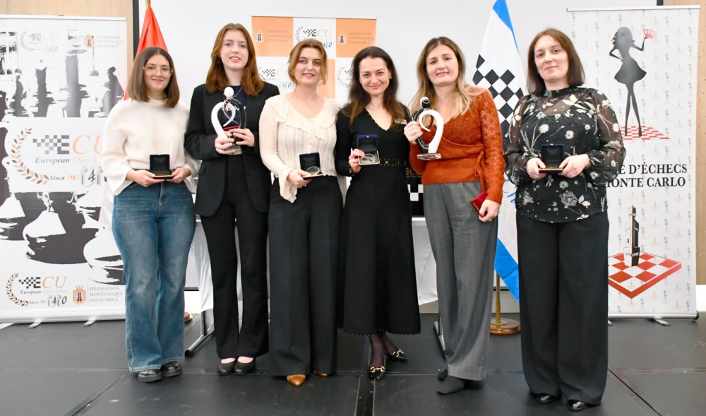 Nino Batsiashvili and Eline Roebers emerged as champions of the European Women’s Rapid and Blitz Championships, respectively, both securing decisive victories in the final round. The 2025 European Women’s Rapid & Blitz Chess Championships took place from January 8–12, 2026, in Monte Carlo, Monaco. The total prize fund for the two events was €46,500, with €15,200 allocated to the Blitz Championship and €31,300 to the Rapid Championship. The 2025 edition set a new participation record, with 154 players from 32 federations registered for the Rapid event and 145 players for the Blitz competition. The first event on the schedule was the European Women’s Blitz Chess Championship 2025, a 13-round Swiss-system tournament played on January 9 under a time control of 3 minutes per game plus a 2-second increment. The blitz event was fiercely contested and came down to the wire. IM Bella Khotenashvili of Georgia seized the lead after Round 7 and entered the final round with 10/12, a full point ahead of IMs Oliwia Kiolbasa (POL), Yuliia Osmak (UKR), and Eline Roebers (NED). Top seed Roebers rose to the occasion, defeating the leader in their direct encounter to clinch the title. Four players tied for third place with 9.5/12, and Oliwia Kiolbasa claimed the bronze medal on tiebreaks (superior Buchholz score). Complete final standings – Blitz The European Women’s Rapid Chess Championship 2025, an 11-round Swiss-system tournament with a 15+10 time control, was held from January 10–11 at the same venue – Hotel Novotel – and followed a similarly dramatic script. GM Alexandra Kosteniuk of Switzerland surged into sole lead after Round 7 and held that position through the penultimate round. In the final round, she faced GM Nino Batsiashvili (GEO), who trailed by a full point. Needing a win, Batsiashvili delivered brilliantly, securing the gold medal with a final score of 9/11. Kosteniuk finished second with the same score but had to settle for silver after losing their head-to-head encounter. Six players tied for third place with 8 points each, and IM Sofio Gvetadze earned the bronze medal based on a superior Buchholz tiebreak. Complete final standings – Rapid Photos: European Chess Union