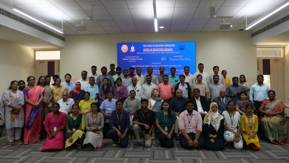 Chennai, January 22–24, 2026 – A quiet revolution in classroom learning unfolded at Madras Christian College (Autonomous) as the FIDE Chess in Education Commission (CIE), in partnership with the Emmanuel Chess Centre, inaugurated the Chess in Education – Preparation of Teachers’ (PoT) Course. Held at the Blue Whale Hall, MMIP, MCC, the three-day intensive programme focused on equipping teachers – especially from the Tribal Welfare Department – with the skills to bring chess into classrooms, reaching nearly 27,000 tribal children across Tamil Nadu. The course extended far beyond chess fundamentals. Over three immersive days, WIM Rita Atkins and Dr. Joseph Ebenezer guided participants in using chess as a structured pedagogical tool to strengthen academic skills, cultivate critical thinking, and foster life skills. Through interactive sessions, live demonstrations, and hands-on exercises, teachers explored how chess enhances problem-solving, decision-making, and mental agility – making learning both engaging and meaningful. Dr. P. Wilson, Principal of MCC, welcomed the gathering with warmth, expressing his delight at seeing chess embedded into educational institutions and underscoring the transformative potential of innovative learning approaches. WIM Rita Atkins, EDU Secretary of FIDE CIE, also presented the Tamil and English editions of the FIDE Chess in Education Course Book, localizing a globally accredited curriculum for Tamil Nadu schools. The programme received strong support from Tmt. G. Lakshmi Priya, IAS, Secretary to Government, Adi Dravidar and Tribal Welfare Department, who spoke passionately about how chess can empower children from marginalized communities, enhance equity, and improve learning outcomes. Thiru S. Annadurai, C.L.S., Director of the Tribal Welfare Department, highlighted the Department’s pride in partnering with FIDE CIE and Emmanuel Chess Centre to take chess education to the grassroots, ensuring that children in remote tribal regions have access to world-class, future-ready learning opportunities. The initiative received strong governmental backing. Ms. G. Lakshmi Priya, IAS, Secretary to the Government, Adi Dravidar and Tribal Welfare Department, spoke passionately about how chess can empower children from marginalized communities, enhance equity, and improve learning outcomes. Thiru S. Annadurai, C.L.S., Director of the Tribal Welfare Department, expressed pride in partnering with FIDE CIE and the Emmanuel Chess Centre to bring world-class, future-oriented learning opportunities to remote tribal regions. At the valedictory session on January 24, Dr. Veena Eswaradas highlighted chess’s cognitive benefits, including enhanced analytical reasoning and mental flexibility. Certificates were awarded to 54 participants who successfully completed the PoT Course. Dr. Joseph Ebenezer, Senior Lead Instructor for FIDE CIE, FIDE Trainer, and Candidate Master, emphasized the programme’s global standards and pedagogical rigor. Of the graduates, 34 earned the FIDE School Instructor (SI) title, qualifying them to implement chess-based learning in schools. SI title holders included: Government Tribal Residential Schools / EMRS: C. Gajalakshmi; M. Thangadurai; Sivasankari; Kabildev K; Suresh D; S. Pugazhenthi; R. Chandra Somu; M. Suresh; E. Sathish Kumar; R. Nithiyanandham; Gobi S; Rajakumar D; Duraiswami P; Chandru D; Deenadhayalan V; P. Sivakumar; Madhan Kumar L; Govindhammal R; M. Gowri Rani; Gnanasakthi S; Samikkannu P; Jeevitha G; Settu T; A. Anbuchelvan. Madras Christian College (Autonomous) alumni: Genita Gladys A; Joshua Anand Samuel; Jim Isaac; Gracelin Victoriya K; Dr. Ishvar Mohan; Dr. N. Prabhu. Women’s Christian College alumni: Pon Margret A; Dr. M. Getzi. Meston College of Education alumni: Aparna A; Jecinth Evlyn J. Other participants: Dr. Emma Kalpana; Bharaneeshwaran V. Chess sets and the Winning Moves DVD were provided to schools to support classroom implementation. This initiative marks a major step in mainstreaming Chess in Education across Tamil Nadu, empowering teachers and students with innovative, future-ready learning tools while fostering cognitive development, critical thinking, and 21st-century competencies at the grassroots level.