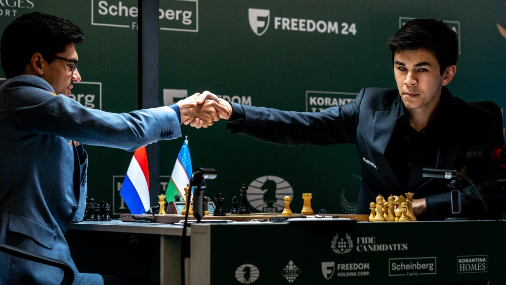 Javokhir Sindarov has won the FIDE Candidates Tournament this afternoon with a round to spare and will challenge Gukesh D for the World Championship at the end of the year. His game against Anish Giri ended in a draw, and with one round remaining, Sindarov holds a commanding two-point lead over the rest of the field. In the FIDE Women’s Candidates Tournament, Bibisara Assaubayeva defeated Anna Muzychuk to move into a tie for first place with R Vaishali. Tomorrow’s final round will determine whether there will be an outright winner or a tiebreak will be required. Up to six of the eight players still have a theoretical chance to win the event. Let’s take a closer look at the action. The ceremonial first move was performed by Isai Scheinberg, a long-standing supporter of chess and the first awardee of the FIDE Medal of Merit in the 21st century. In the key game of the round, Javokhir Sindarov held Anish Giri to a draw, securing first place and claiming victory in the FIDE Candidates Tournament. Both players blitzed out the first fourteen moves. Sindarov accepted an isolated d-pawn in the Queen’s Gambit Declined, while Giri was content with a slight edge, enjoying a dynamic position without any real risk. However, Sindarov made excellent use of the rest day and came into the game extremely well prepared. “We checked and prepared against Anish. At some point, it became boring because I reviewed this line ten times, as he had already played it against Andrey Esipenko. We had a good fight, but after we exchanged queens, I felt I wouldn’t have any problems holding the draw. That proved true: I played quickly, and it was an easy draw,” Sindarov explained in the postgame press conference. https://www.youtube.com/watch?v=yTtBY4CXL0s He also added with a touch of humour: “I had zero problems in the rook ending and saw the final line very quickly. I knew I wouldn’t lose that position with one hour and thirty minutes left on the clock – I was just chilling.” Sindarov expressed deep gratitude to those who supported him throughout the tournament: “A big thank you to everyone who supported me during this long event. Every round was very tough, and the last week was the hardest of my life. I even slept very badly in the final days. I’m very happy it’s over. Many thanks to my family, my coach, my seconds, and everyone who supports me.” He also praised his coach, Roman Vidonyak: “He analyses all the information from the tournament and points out what I’m doing wrong in certain positions. He gives me advice. I’ve been working with him for more than a year. He has also worked with Nodirbek Yakubboev, and you can see the results of our work. He’s a great person: we play board games together, he’s funny, very supportive, and a hard worker. With him, I’ve improved my chess a lot.” In the other three games of the round, Wei Yi defeated Andrey Esipenko in a highly complex attacking line of the Petrov Defence. Interestingly, Wei Yi had already employed this line back in 2017 against Yu Yangyi at the Hainan Danzhou GM Tournament, where he also scored a brilliant victory. At a critical moment, Esipenko sacrificed a piece for a couple of pawns and an attacking initiative. In different circumstances, the gamble might have paid off, but Wei Yi’s defensive precision proved impeccable on this occasion. Both players joined Zachary Saine in the media centre for a joint press conference in which they went over the game. https://www.youtube.com/watch?v=Rh6zpiZttfc Despite his young age, Praggnanandhaa R already has extensive experience against Fabiano Caruana, with their head-to-head record standing at 13 games: two wins each and nine draws. The Nimzo-Indian Variation they chose dates back to the 1970s and is known for its deep strategic complexity. By around move twelve, Praggnanandhaa had already spent over half an hour in a position with more than 300 recorded master games, an unusual situation indeed. This left Caruana with an intriguing choice: follow the main theoretical path or deviate. He opted for a secondary line and soon generated a powerful attack, ultimately forcing his opponent to sacrifice his queen to avoid immediate checkmate. Caruana appeared to be on the verge of victory, but Praggnanandhaa demonstrated remarkable resilience, finding a defensive resource based on a fortress setup that allowed him to secure a draw. In the final game of the round, Hikaru Nakamura and Matthias Bluebaum produced an exceptionally accurate encounter, both achieving a near-perfect 99% accuracy score in a solid draw. Facing a classical Queen’s Gambit Declined setup, Nakamura quickly relinquished the bishop pair to reach a standard Carlsbad structure and prepare a minority attack. Unfazed, Bluebaum responded confidently, simplifying the position and equalizing with ease. By move twenty-five, the game was completely balanced. Although play continued until move forty-one, the evaluation remained unchanged throughout, further reinforcing Bluebaum’s reputation as one of the most solid players on the circuit. The results of the penultimate round in the FIDE Women’s Candidates Tournament have left the competition wide open. Six players still have a theoretical chance of winning the event, although only five can qualify for a playoff at the same time. The leading contenders are Vaishali Rameshbabu, who held Tan Zhongyi to a draw, and Bibisara Assaubayeva, who defeated Anna Muzychuk with an impressive display of home preparation. Both now stand on 7.5 points. https://www.youtube.com/watch?v=CkRp_LvKluI In the final round, Vaishali will have the white pieces against Kateryna Lagno, while Assaubayeva will play Black against Divya Deshmukh. If one of them wins and the other does not, the victor will be crowned champion outright. However, the situation remains tense. If both leaders draw, Zhu Jiner – currently on 7 points – could still tie them, as she faces Anna Muzychuk in the final roun