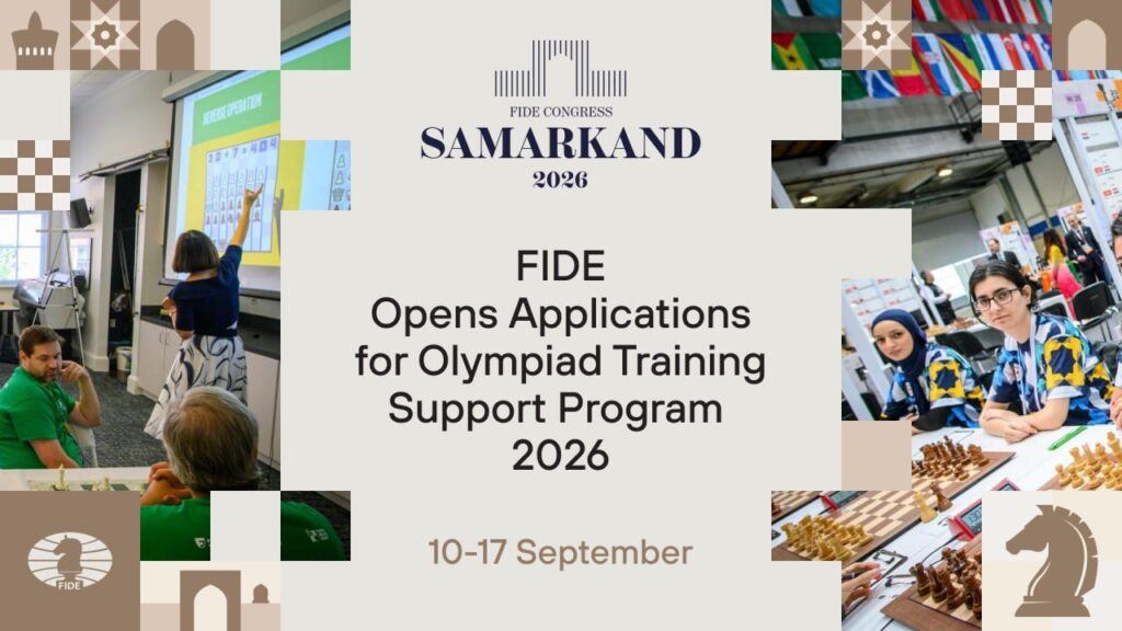 FIDE is pleased to invite federations to apply for the Olympiad Training Support Program ahead of the 46th Chess Olympiad 2026 in Samarkand, Uzbekistan. This well-established and highly regarded initiative has earned strong appreciation from participating federations. Building on its success, the 2026 edition is delivered within the framework of cooperation between FIDE and Freedom Holding Corp., aimed at supporting developing chess nations. A total of over 100 federations across FIDE development levels 3, 4, and 5 are eligible to apply for this year’s program. Participating federations will benefit from a structured preparation program delivered in two phases: Online phase: Each team will receive up to 10 hours of training conducted by professional coaches selected by the FIDE Trainers Program. On-site phase: During the Olympiad, federations will receive co-financing for the presence of their assigned coach. FIDE President Arkady Dvorkovich emphasizes the importance of the program: “Over the past editions, the Olympiad Training Support Program has proven to be an impactful and widely appreciated initiative. It demonstrates FIDE’s commitment to supporting developing federations and ensuring that players have access to professional preparation. We are pleased to further expand this program in cooperation with Freedom Holding Corp. and look forward to another successful edition in 2026.” Timur Turlov, CEO of Freedom Holding Corp., added: “Supporting developing chess federations is an investment in the future of the game. Access to high-quality training and professional guidance helps unlock talent in regions where opportunities may be limited, creating a more inclusive and competitive global chess community. We are proud to contribute to this initiative together with FIDE.” Federations in development levels 3, 4, and 5 wishing to participate must confirm their interest in both the online and on-site phases and indicate their preferred language of instruction no later than May 22, 2026. Based on the number of applications and development levels, the FIDE Trainers Commission will design and allocate training resources accordingly. Olympiad Training Support Application Form (for Federations): https://formdesigner.pro/form/view/243554 FIDE-licensed trainers interested in supporting participating teams are also invited to apply by May 15, 2026. Olympiad Trainer Application Form (for Trainers): https://formdesigner.pro/form/view/243553 Eligible federations: Chess Development Level 5 Federations Antigua and BarbudaBurundiBhutanBelizeBurkina FasoCentral African RepublicCambodiaChadCameroonDemocratic Republic of the CongoComoros IslandsDjiboutiDominicaEritreaEthiopiaFijiGabonGambiaEquatorial GuineaGhanaGreenlandGrenadaGuineaIsle of ManBritish Virgin IslandsKiribatiLiberiaMacau, ChinaMarshall IslandsMaliNew CaledoniaNigerPapua New GuineaRwandaSenegalSeychellesSierra LeoneSolomon IslandsSomaliaSouth SudanSao Tome and PrincipeSudanSyriaTanzaniaTongaSaint Vincent and the GrenadinesYemen Chess Development Level 4 Federations Brunei DarussalamCote d’IvoireHaitiHong Kong, ChinaJapanSaudi ArabiaKuwaitLibyaLesothoMauritaniaNamibiaNepalOmanPalestineSaint Kitts and NevisWales Chess Development Level 3 Federations Netherlands AntillesAlbaniaAlgeriaAndorraAngolaArubaAustraliaBahamasBangladeshBermudaBoliviaBotswanaBahrainCayman IslandsChileCape VerdeCyprusDominican RepublicEgyptEl SalvadorFaroe IslandsGuernseyGuatemalaGuamGuyanaHondurasIraqUS Virgin IslandsJamaicaJerseyJordanKenyaSouth KoreaKosovo*LaosLebanonSaint LuciaMadagascarMoroccoMalawiMaldivesNorth MacedoniaMaltaMozambiqueMauritiusMyanmarNicaraguaNigeriaNauruNew ZealandPakistanPanamaPalauPuerto RicoQatarScotlandSan MarinoSri LankaSurinameEswatiniThailandTajikistanTimor-LesteTogoChinese TaipeiTunisiaUgandaVanuatuZambiaZimbabwe