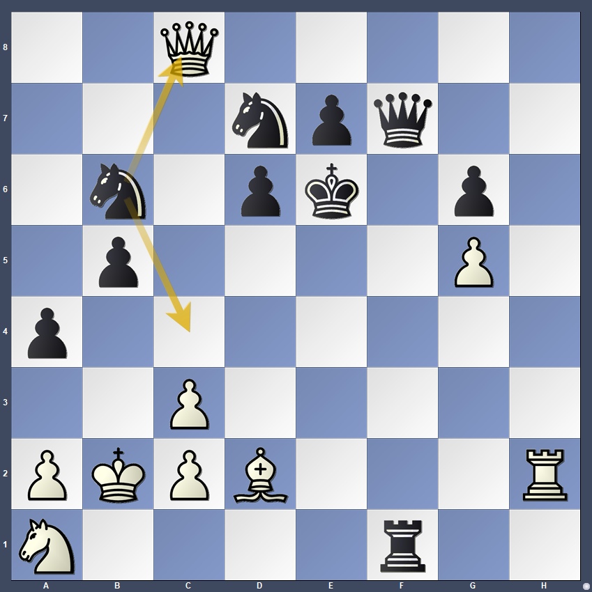 White’s queen is under attack, while the looming 41…Nc4 checkmate leaves no viable defense.