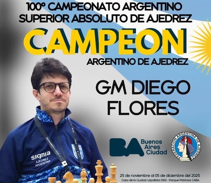 GM Diego Flores emerged as the winner of the 2025 Argentine Championship, claiming his eighth national title. The champion scored an impressive 8.5/11 and was the only player to complete the event undefeated. With this victory, Flores has equaled the legendary Miguel Najdorf‘s record for the most titles in the history of the competition.