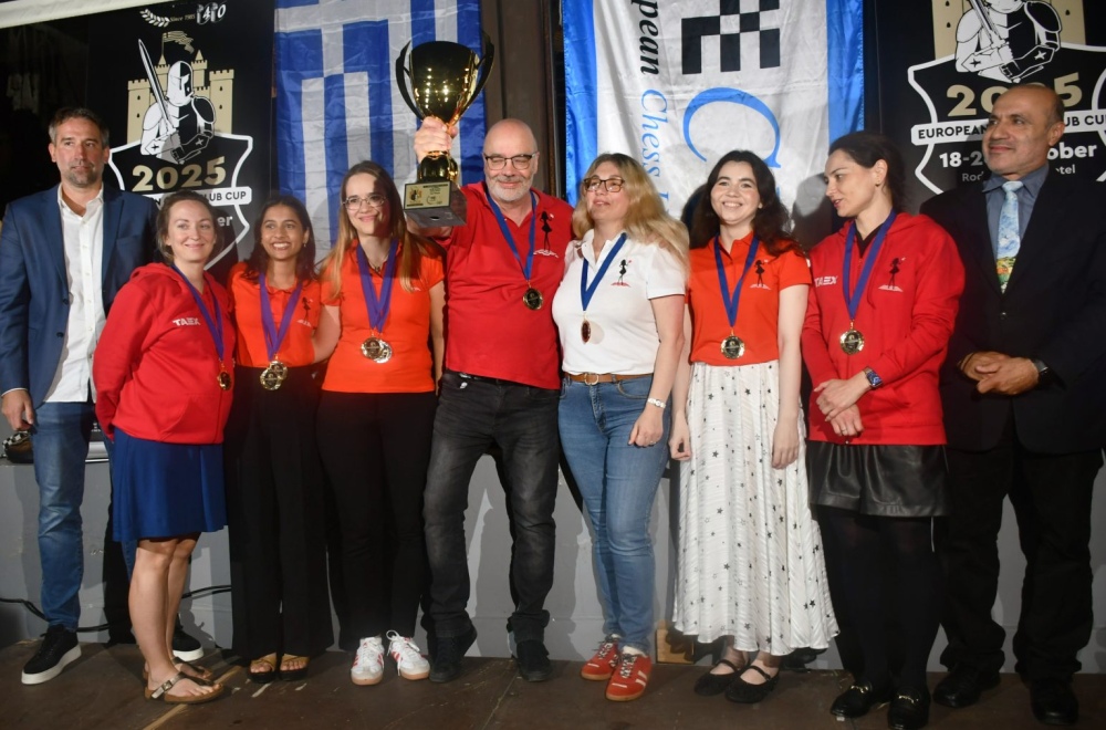 Cercle d’Echecs de Monte-Carlo (Monaco) claimed its eighth gold medal in the European Women’s Chess Club Cup. Having entered the final round with a perfect score, the team had nearly secured the title regardless of the outcome. After a long and intense fight, they drew their match against the Turkish Airlines sports club, finishing with 13 match points—three points clear of the runner-up.