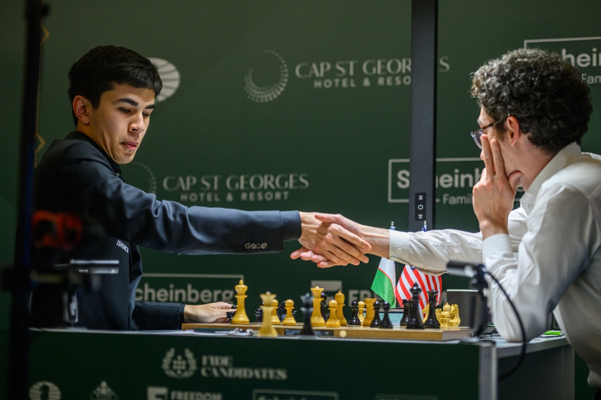 Javokhir Sindarov scored his third win of the tournament this afternoon, taking a major step toward winning the FIDE Candidates after defeating Fabiano Caruana with impressive opening preparation.