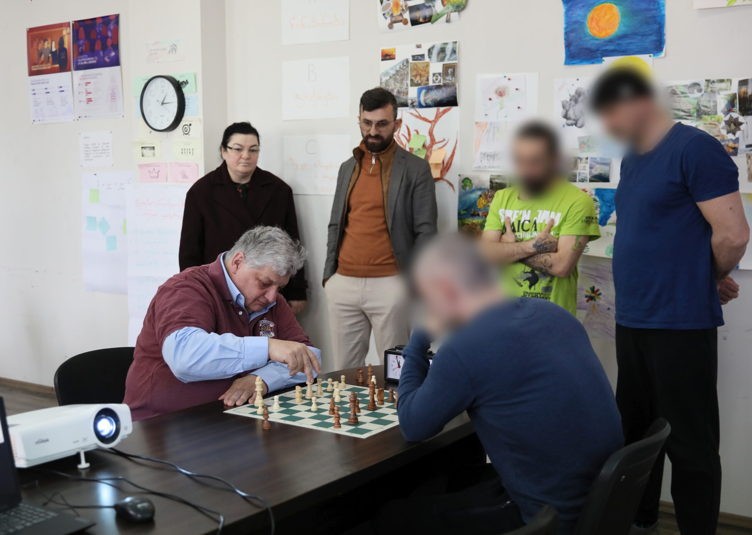 The director of the men’s prison #16, Zaza Jamatashvili, presented all resocialization and rehabilitation programs. Mikhail Korenman also met the members of the Georgian male chess team.