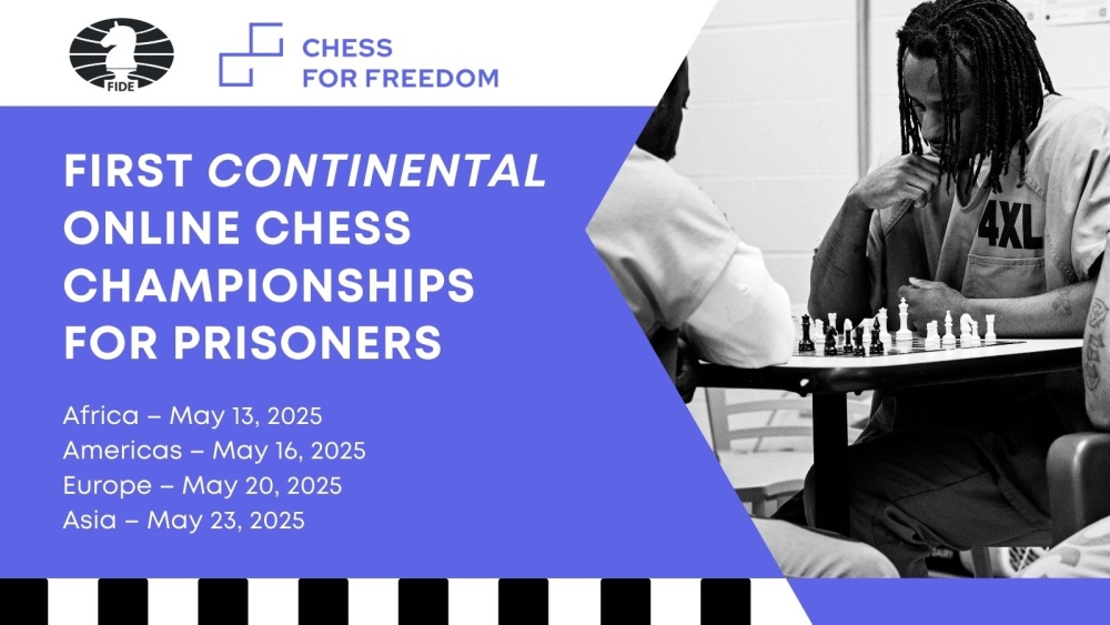 The first-ever FIDE Continental Online Chess Championships for Prisoners will be held in May 2025, with many teams from around the world already registered and additional entries anticipated.