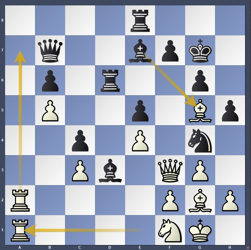 The strength of the bishop on a7, dominating all the dark squares around White’s king, became apparent. Recognizing the hopelessness of his position, Gusain resigned soon after.