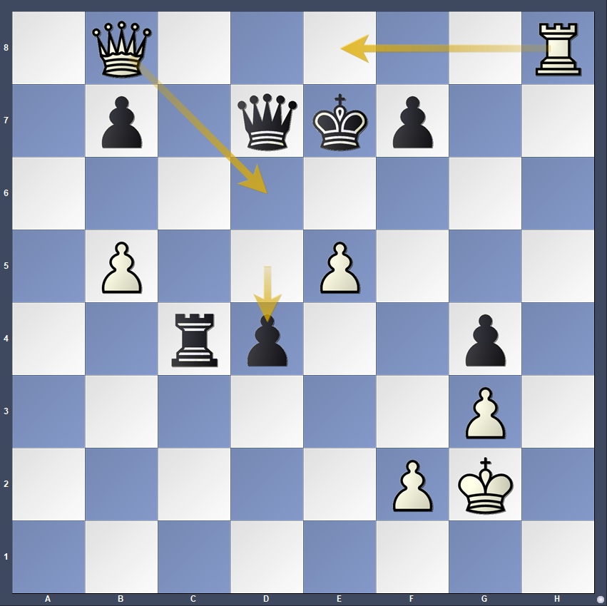 Henríquez Villagra concluded the game in style with the precise and elegant 45.Re8+!. The point is simple yet beautiful: after 45…Qxe8, White delivers a classic “Dovetail Mate” with 46.Qd6#.