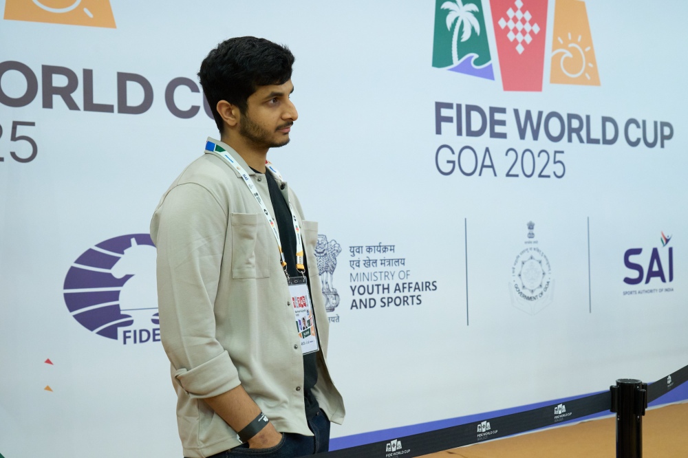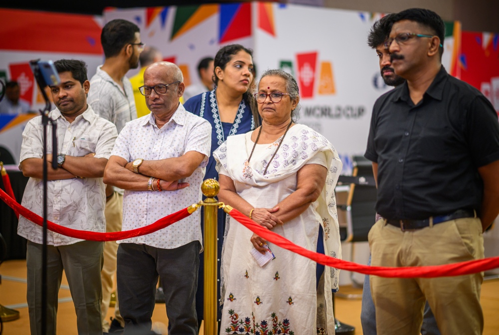 As expected, most of the favourites advanced comfortably to the next round. However, twenty matches ended in 1–1 ties, meaning those players will return tomorrow for the tiebreaks — though one notable favourite will not return at all. Local GM Leon Luke Mendonca (rated 2620) was unexpectedly eliminated from the World Cup this afternoon by China’s IM Wang Shixu B (rated 2402), marking one of the biggest surprises of the opening round.