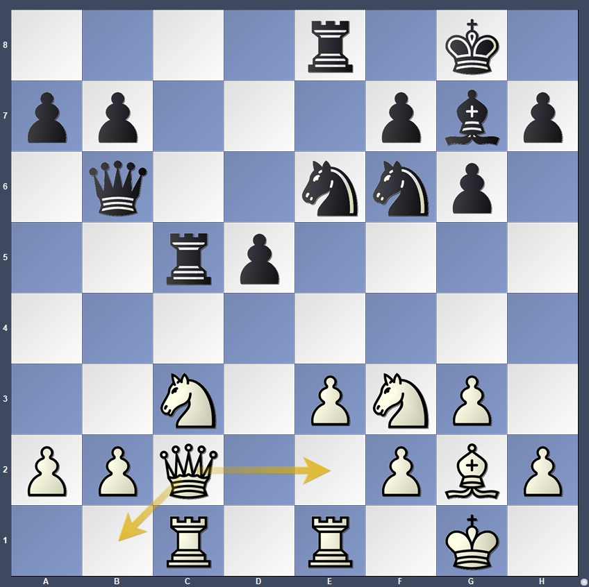 Instead, Erigaisi played 24.Qd2? and after 24…Rxc1 25.Rxc1 Qa6 26.Bxd5 Nf6! Wei Yi equalized and the game was drawn on move 32.