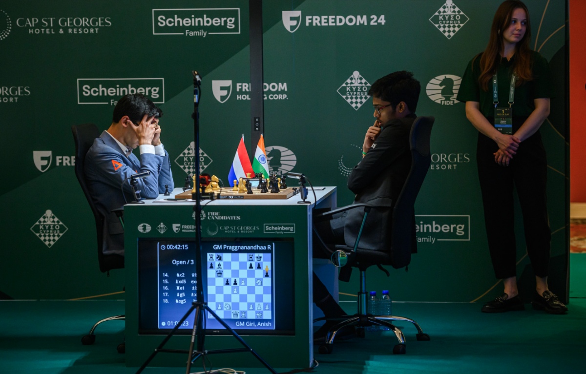 Praggnanandhaa R opted for one of the sharp and unbalanced lines in the Queen’s Gambit Accepted that he enjoys so much, but once again Anish Giri’s opening preparation proved excellent, with the Dutchman only beginning to think seriously around move thirteen.