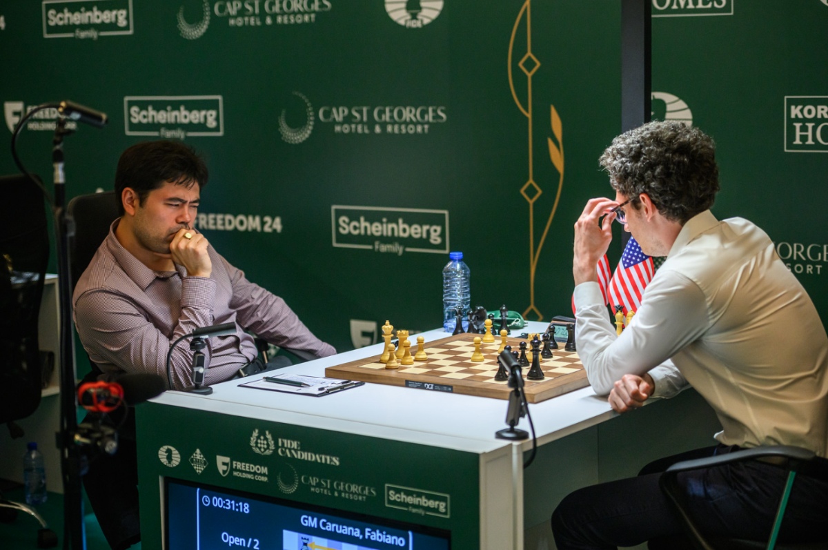 Meanwhile, on the other board, the tournament pursuers were in need of points. Hikaru Nakamura has traditionally enjoyed a strong record against Fabiano Caruana, but he has not been performing at his usual level in Cyprus. Still, in his recaps he continues to stress a “game-by-game” approach, ready to seize any opportunity that arises.
