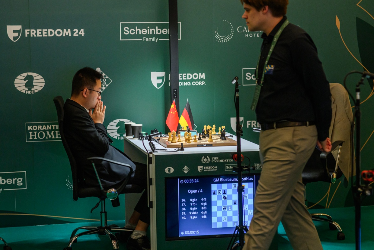 Reinvigorated after the second rest day, the sixteen contenders returned to the playing hall for the first of seven rounds in the second half of the event. Playing with Black, FIDE Candidates tournament leader Javokhir Sindarov held his opponent to a draw this afternoon.