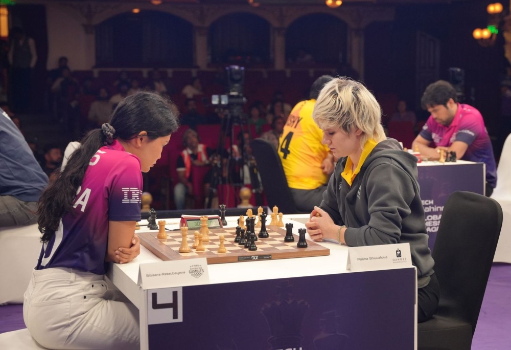 Fyers hit back on the top women’s board, where Bibisara Assaubayeva pressed Polina Shuvalova in a Ruy Lopez. Black had serious weaknesses on the light squares, and Bibisara’s queen invaded the back rank, targeting the queenside. By move 40, the evaluation bar was fully in White’s favour. With the increment in place and more time on her clock, Assaubayeva finished smoothly. It was her first win of the season after four draws and Shuvalova’s first loss in Mumbai, narrowing the score to 4–3 for Ganges.