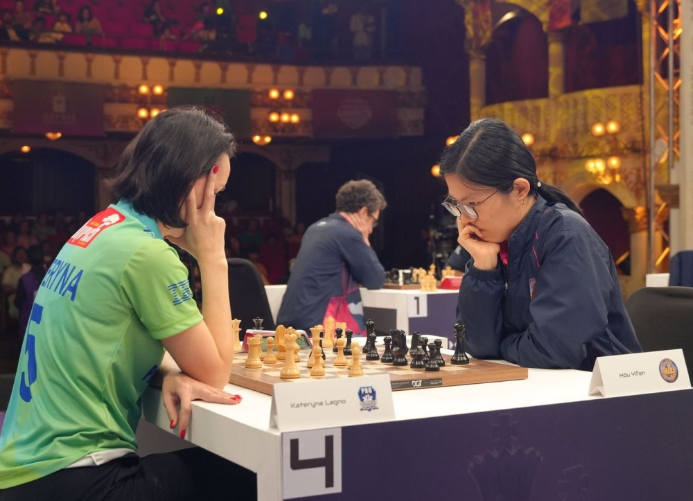 Almost simultaneously, Kateryna Lagno struck on the women’s board. Facing Hou Yifan in a Sicilian, she punished an early mistake, trapping Black’s queen in the centre. Two moves later, Hou was forced to give up her queen for a rook. Lagno converted smoothly, giving the Knights another three Game Points and a 6–0 lead.