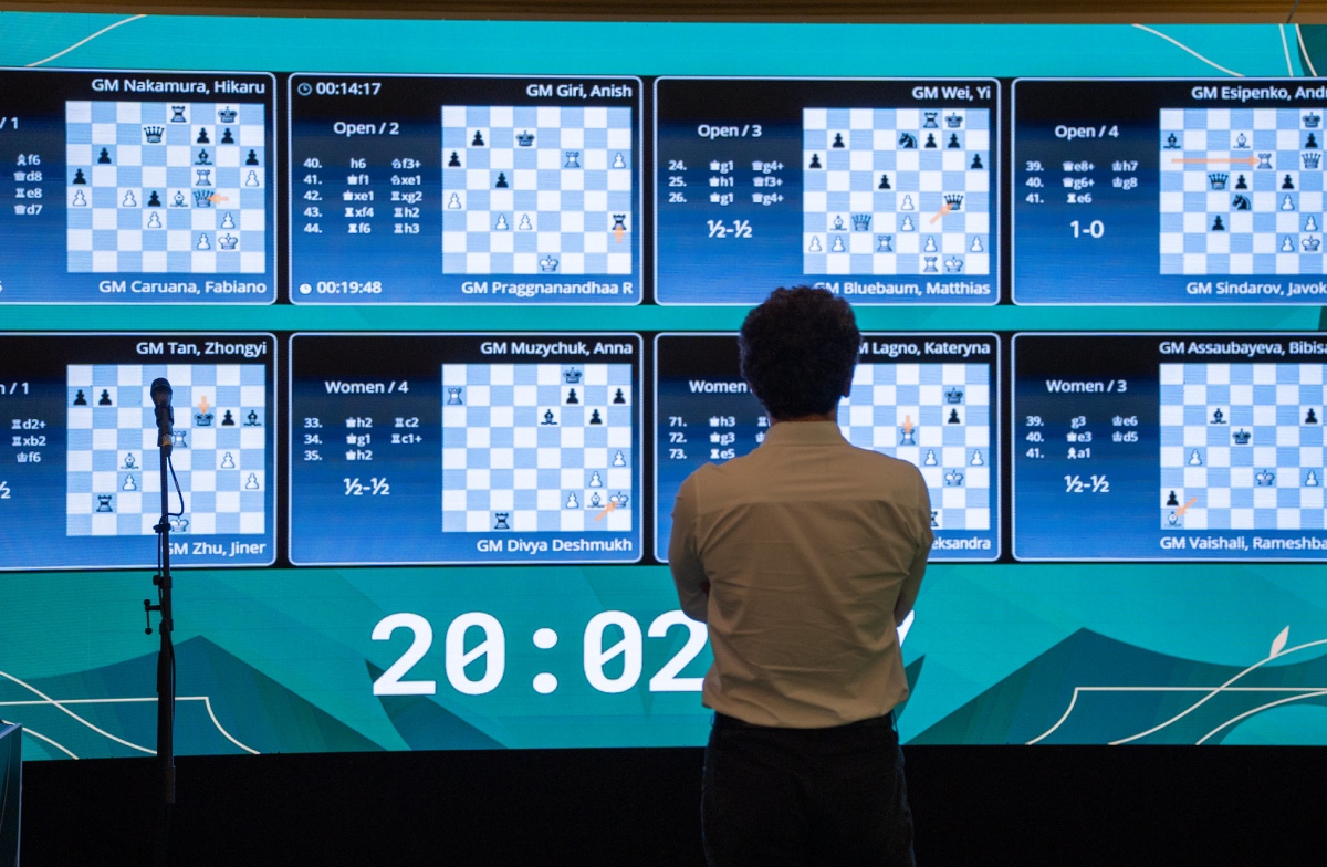 Fabiano Caruana has his own variation of this habit: he frequently stands in front of the large screen displaying all the games in progress. Watching him there, one might wonder whether he is analysing his current position – or already preparing an opening for a future opponent!