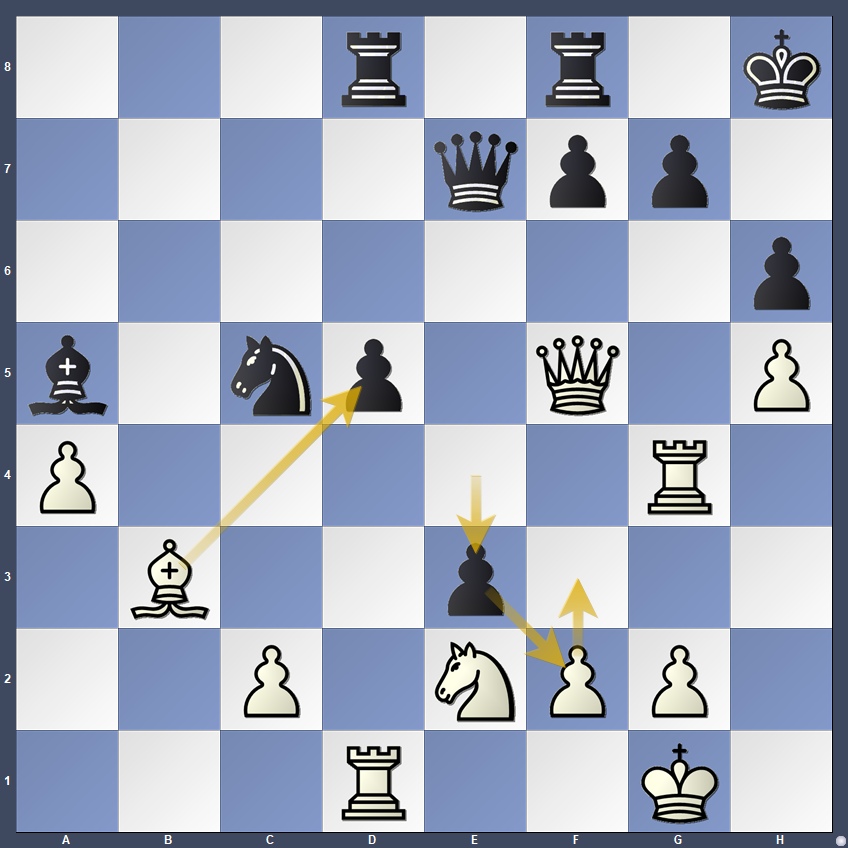 Notably, Black could no longer contest the d-file with 31…Rad8, as 32.Nf5! wins material after 32…Qc7 33.Rxd8 Rxd8 34.Rxd8 Rxd8 35.Qa7, picking up at least a pawn. Despite determined resistance, the Armenian grandmaster could not save the game.