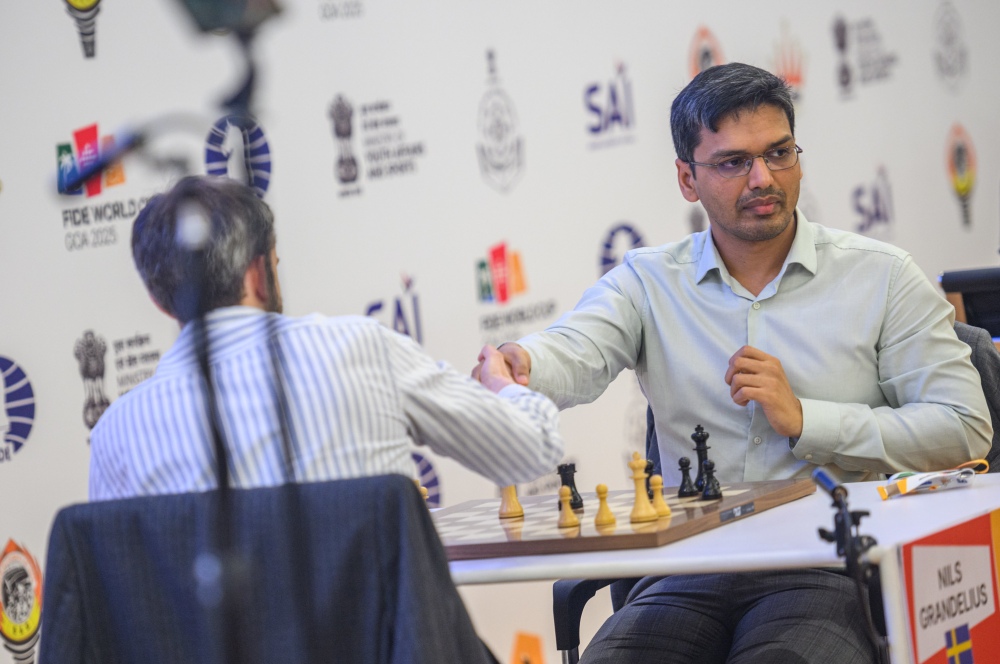 GM Nils Grandelius (2645) will also be leaving Goa tomorrow, eliminated by GM Pentala Harikrishna (2697). The long-time Swedish number one, celebrated for his deep opening preparation and creative ideas, came up short in the first game, letting his opponent off the hook at a critical moment.