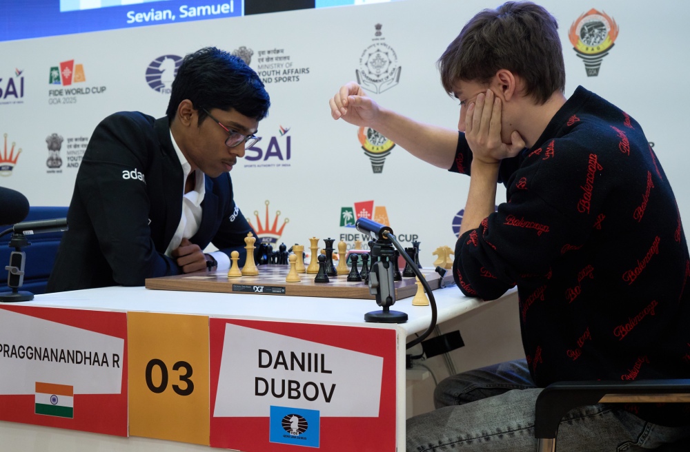 GM Daniil Dubov (2684) produced one of the major upsets of the day, eliminating the 2023 Baku finalist and Indian hero GM Praggnanandhaa R (2771). Continuing the same pragmatic approach that has served him well in earlier tiebreaks, Dubov offered an early 12-move draw with the White pieces, effectively shifting the pressure onto his opponent to create winning chances in the second game.