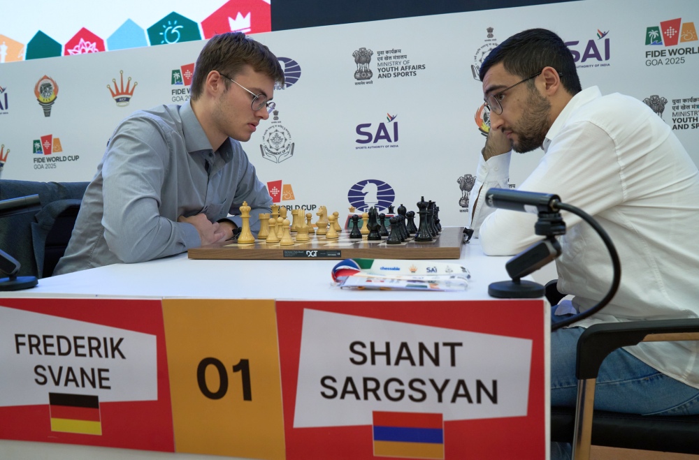 Renowned for his deep preparation and rock-solid style, Sargissian remains one of the most respected professionals on the circuit, and this afternoon he added another impressive victory to his résumé, eliminating America’s GM Awonder Liang (2710) by winning the first rapid tiebreak game and calmly drawing the second.