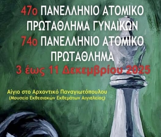 The 74th Panhellenic Championship and the 47th Panhellenic Women’s Championship were held concurrently in Aigio, Western Greece, from December 3 to 11. Both events followed a 10-player round-robin format under classical time controls.