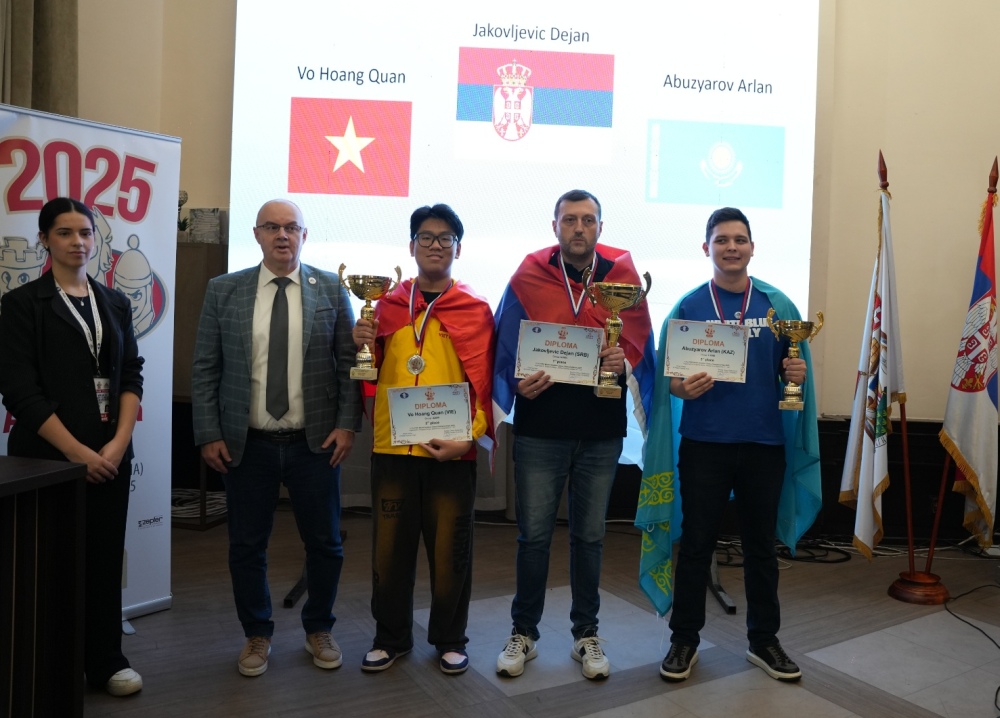 In the open section U2000, the first place was won by Dejan Jakovljević from Serbia with 8/9.  Vo Hoang Quan from Vietnam (7.5/9) took silver, while Arlan Abuzyarov from Kazakhstan completed the podium with 7/9.