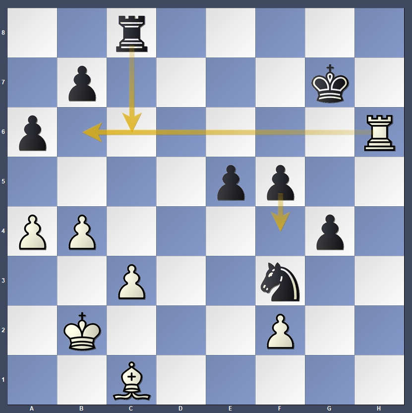 At this critical moment, victory was within reach had Song chosen 40…f4!, advancing her kingside majority and cutting communication between the rook on h6 and the bishop on c1.