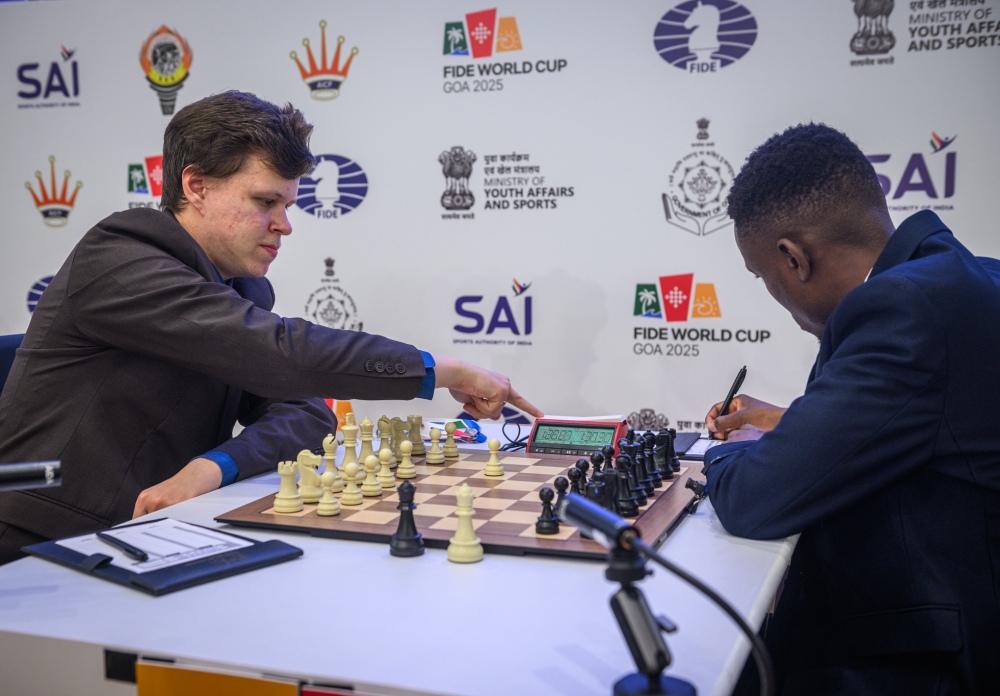 Rounding out the top results, GM Vladislav Artemiev (FIDE, 2637) also outplayed CM Heskiel Ndahangwapo of Namibia, trapping his opponent’s queen in the middlegame — a rare tactical motif at this level, and one that drew murmurs of admiration from spectators following the games online.