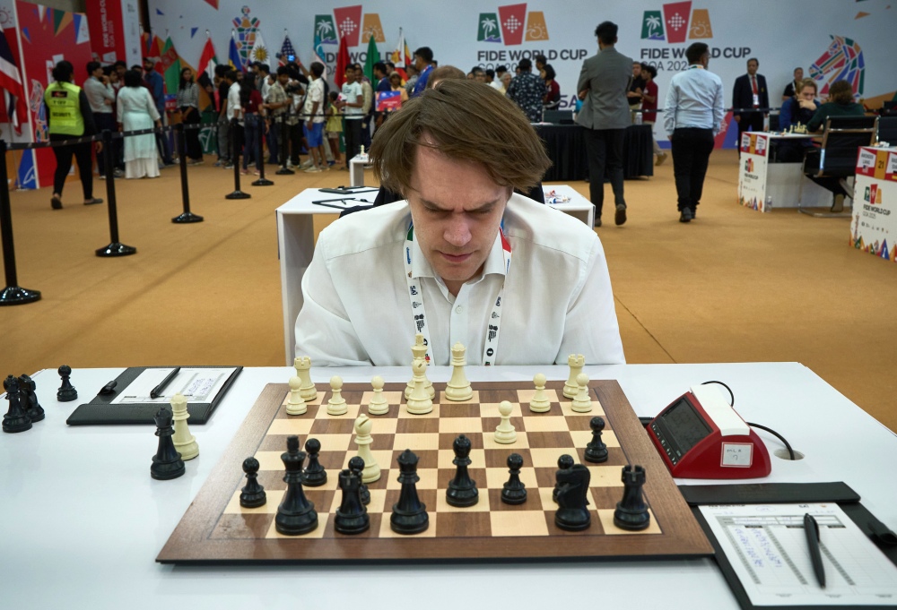 Another shock result of the round was the elimination of GM Anish Giri (2759) from the World Cup. His opponent, German GM Alexander Donchenko (2641), had held a solid draw with Black in the first game and came to the board determined to press. He did so relentlessly all afternoon, until Giri’s normally impeccable defence finally gave way.