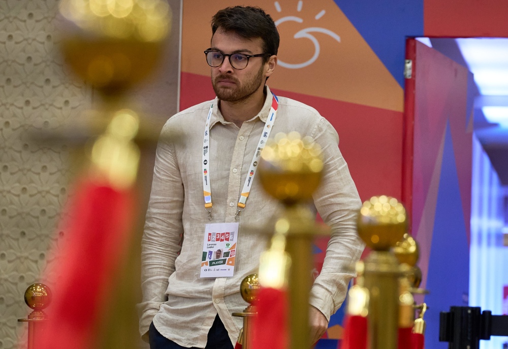 Italy’s Lorenzo Lodici (2572) continues to exceed all expectations. Still undefeated after three rounds, the Italian grandmaster has been one of the breakout stars of the event. After sensationally eliminating Hans Moke Niemann (2729) in Round 2, he added another major scalp this afternoon, defeating England’s Michael Adams (2635). An incredible run!