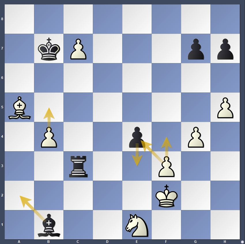 Dubov had not one, but two opportunities to seize the win with the powerful thrust 42…e3!, followed by 43…Be4 or 43…Ba2–c4, depending on where White placed his king. Instead, Dubov erred with 42…Ba2, missing the key resource, and again failed to play …e3 on the subsequent move.