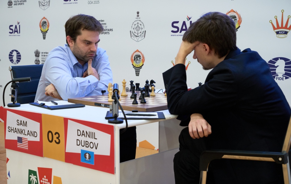 One of Team USA’s three remaining contenders in the World Cup, GM Sam Shankland (2654), may well have used up one of his nine lives this afternoon in his tense encounter with GM Daniil Dubov (2684).