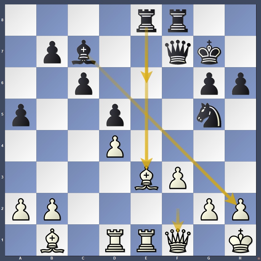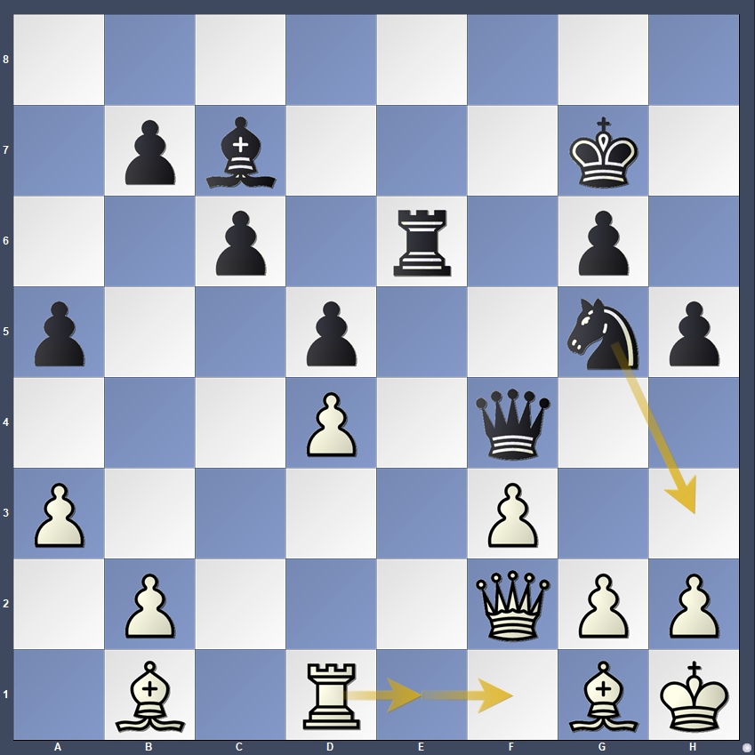 Aronian has just played 33.Qf2–f1, a move that looks perfectly normal at first glance, but a hidden tactical shot was lurking. Erigaisi, likely focused on other strategic ideas, missed the powerful 33…Bxh2!, winning a pawn. The point is revealed after 34.Kxh2 Rxe3! 35.Rxe3 Qf4+, picking up the rook with a winning position. Instead, 33…Re6? was played.