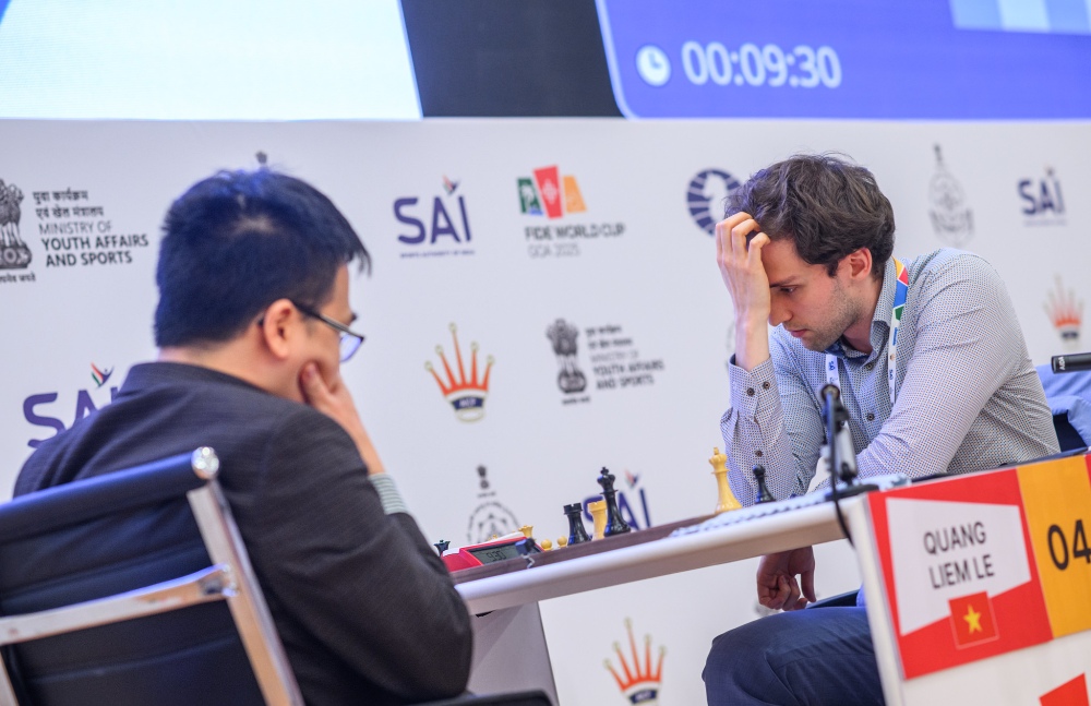 The final game of the round stretched well into the fifth hour of play. In an extraordinary save, GM Le Quang Liem (2729) escaped a completely lost rook ending against GM Alexander Donchenko (2641), forcing a tiebreak in which many would now consider him the favourite.